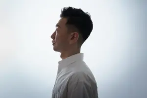 額を出すアップバングとサイドを刈り上げたツーブロックの組み合わせは、首元にボリュームがあっても全体がスッキリ見える万能スタイル。
